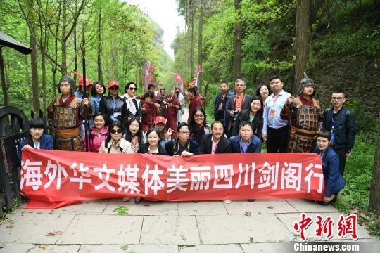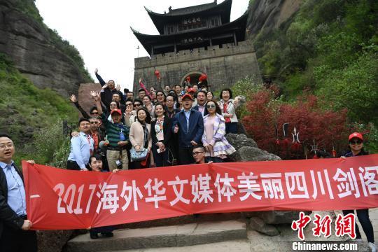 海外华文媒体代表在广元市剑阁县剑门关景区留影。 张浪 摄