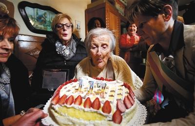 当地时间2016年11月29日,意大利韦尔巴尼亚,埃玛·莫拉诺庆祝117岁生日。图/视觉中国