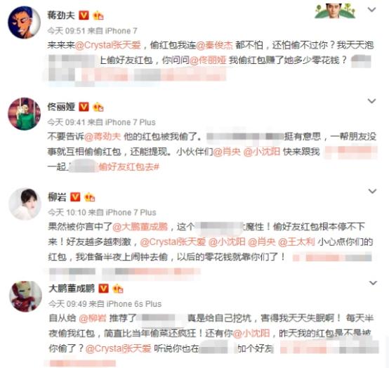 其实除了柳岩之外,还有佟丽娅、蒋劲夫、王祖蓝、陈子由、冯绍峰、小沈阳等知艺人都在微博上晒“偷红包”,半个娱乐圈的人都在被“偷红包”痴迷。