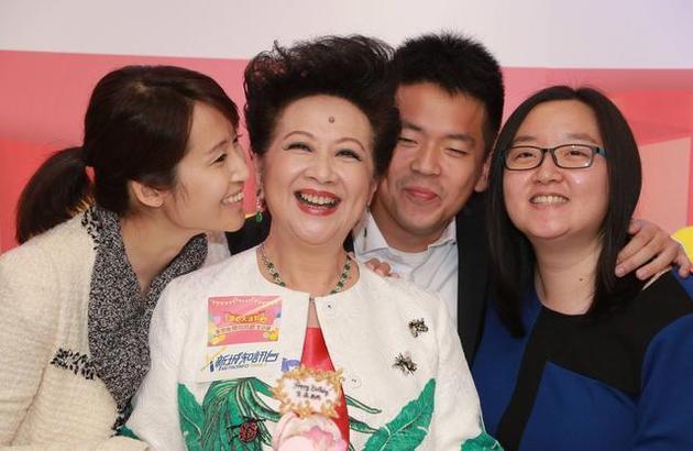 薛家燕与长女石佑珊(左一)、儿子石耀庭(右二)及幼女石耀珠(右一)