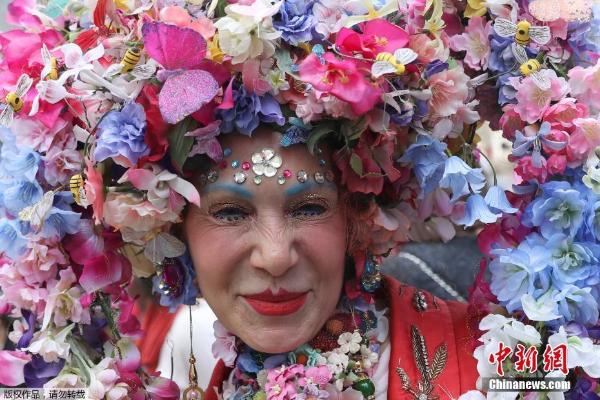 当地时间2017年4月16日,美国纽约,一年一度的纽约复活节帽子大游行在第五大道举行,这是纽约最具特色的节日盛会之一。人们头戴经过精心设计的帽子争奇斗艳,一扫冬天的阴冷,带来春天欢快的气息。