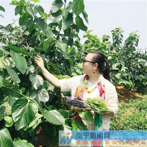 南宁新闻网-南宁晚报讯(记者 凌剑伊 通讯员 关妮纳 文/图)这个时节,桑葚开始成熟了,随手摘下一颗,丢进嘴里,紫色的汁液迅速在口腔里化开,那种酸酸甜甜的感觉是不是很美好?你可知道,桑葚这毫不起眼的小浆果,全身可都是“宝”,民间就有“三月桑椹赛人参”的说法。除了桑葚果汁、桑葚酒、桑葚酸奶之外,还有桑椹干、桑葚粉……小小桑树如何长出千亿元产业?水果要实现“长生不老”有何“保养秘方”?
