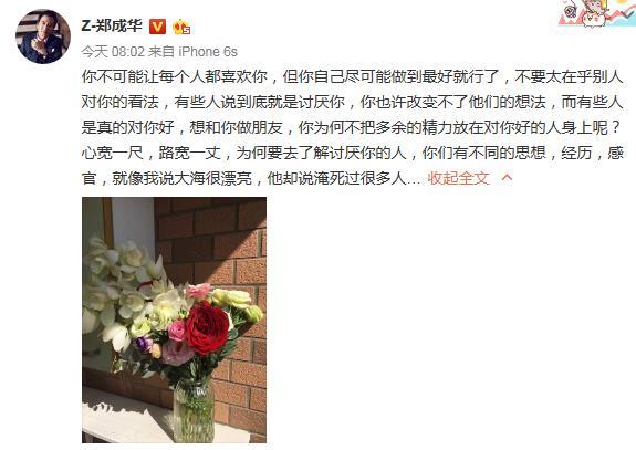4月18日,郑爽的父亲郑成华在微博发文,疑在鼓励女儿不要太在乎别人的看法。“你不可能让每个人都喜欢你,但你自己尽可能做到最好就行了。”