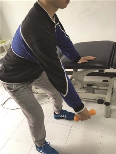 手拿小哑铃(或装满水的矿泉水瓶);俯身画圈,牵拉放松肩关节关节囊。
