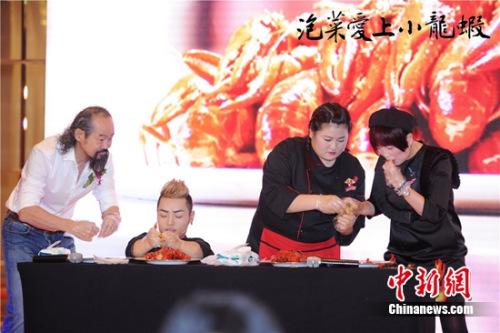 现场元华、苑琼丹共享小龙虾盛宴