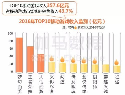 与此同时,收入榜上也有一些小幅度更替的迹象——《王者荣耀》《阴阳师》和《Fate/Grand Order》等都是2016年新入榜的产品。《王者荣耀》在iOS收入榜上排在第3位,《阴阳师》排在第9位;任天堂的《Pokemon Go》《火焰纹章》等在Android端的收入也多少证明了这家传统主机大厂转型的成绩。