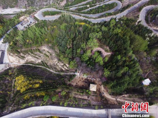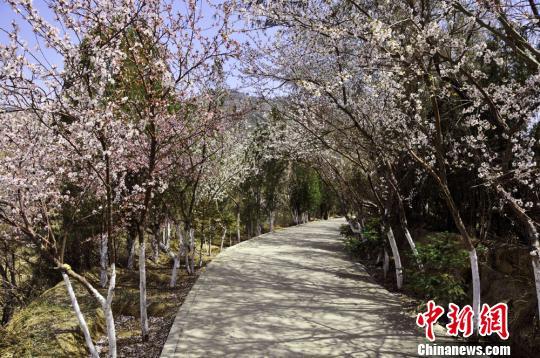 资料图。图为山上的小路曲径通幽,路边春花烂漫。兰州市南北两山环境绿化工程指挥部供图