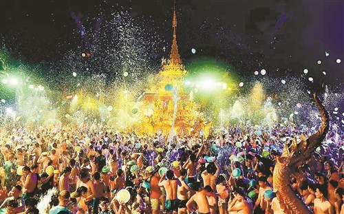 热闹非凡的深圳华侨城锦绣中华民俗村泼水节。(华侨城供图)