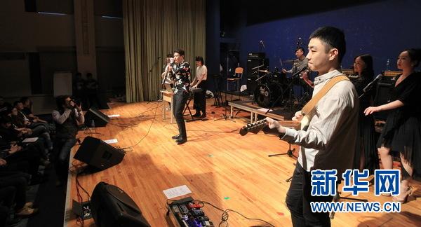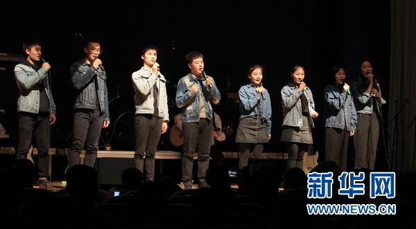 22日晚,在白俄罗斯的中国留学生举办第六届中白流行音乐节。新华网发(马祖列维奇摄)