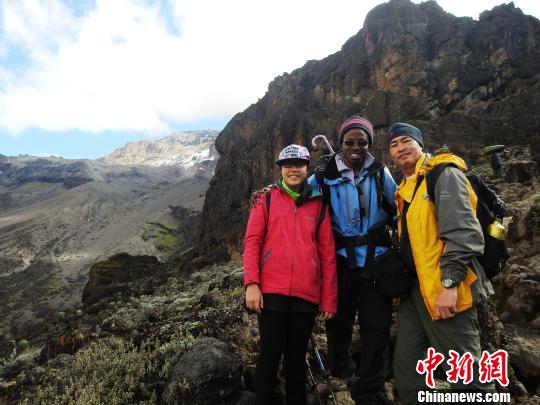 图为陈萱2016年和父亲陈守忠攀登非洲最高峰乞力马扎罗山,途中与向导合影。 陈守忠提供 摄