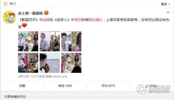 腾讯娱乐讯 4月18日,由吴奇隆、戚薇、左航、任言恺等主演的都市情感剧《繁星四月》已正式在江苏卫视幸福剧场开播。剧中,由戚薇饰演的人气主播叶繁星不仅在事业上小有成就,更是一个明眸皓齿的气质美女。戚薇在剧中的几套造型都追求时尚大方的视觉享受,受到颇多赞誉。然而,前天戚薇的一条礼服裙却被眼尖的网友发现和蒋欣几日前播出的剧中造型一致,意外撞衫引发全民热议。