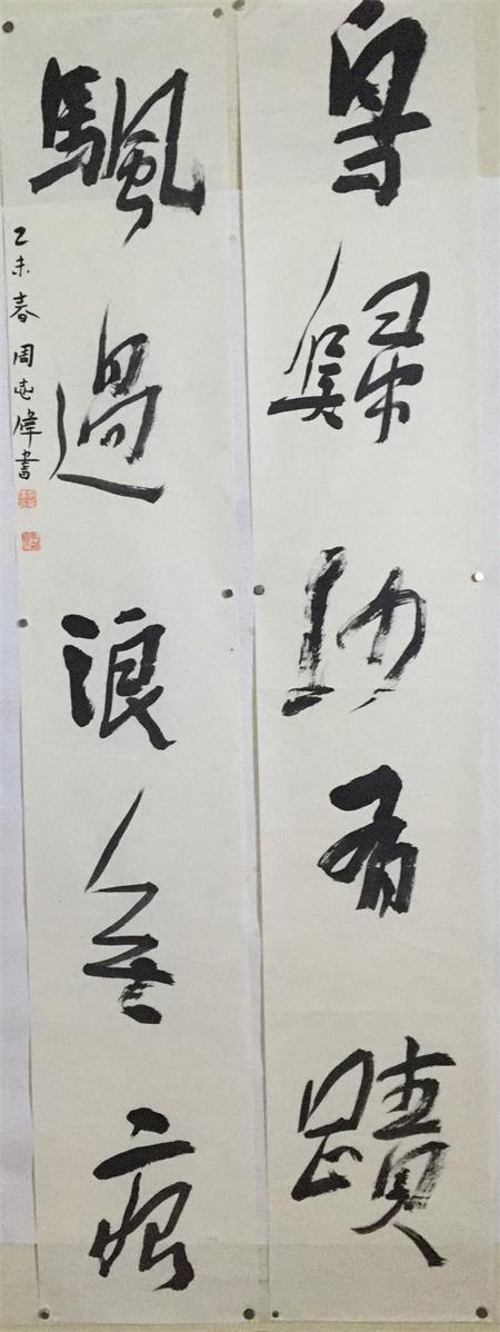周志伟: 书法是一门汉字艺术,表现的是书家对现实生活的倾述与幻想和自然的情怀,抒胸臆、表心画。既然是书“法”作品,法里边就一定有规矩了,这个规矩指的是章法的协调、变化、自然与美感的体现。