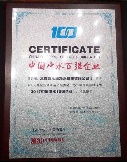 4月18日由中国商报社主办、《中国直饮水》承办的2017中国净水品牌峰会暨第二届中国净水100强企业颁奖盛典会中,凭借技术、服务优势,以及突出的业绩与品牌影响力,碧水源斩获了“2017中国净水十强企业”、“中国净水家用膜十强企业”和“营销创新奖”等荣誉。