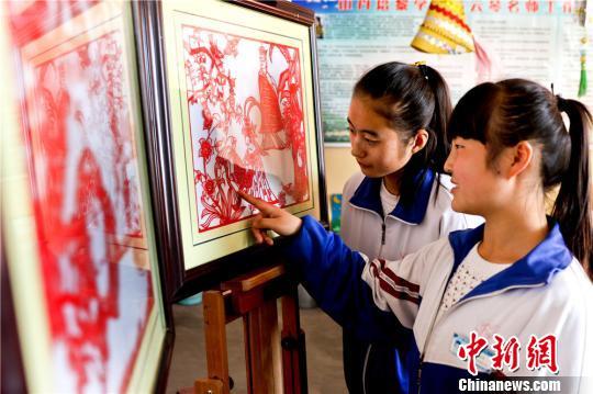 同学们观摩民间剪纸作品。 王将 摄