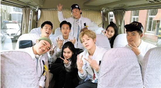而在李晨微博晒出的照片中,李晨、邓超、王祖蓝、鹿晗、郑凯、陈赫、迪丽热巴和Angelababy八人一起,在节目录制的大巴上做出各种搞怪表情。辣妈baby和“胖迪”热巴两位也挨得挺近。