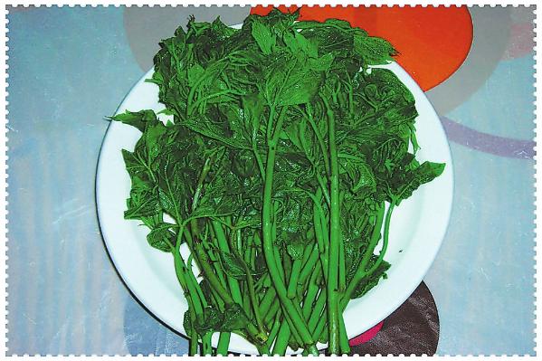 做法:把刺五加叶子用沸水焯一下,去掉涩味儿;捞出