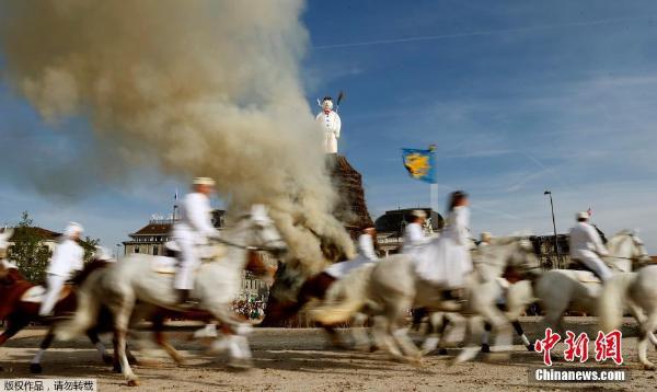 当地时间4月24日,瑞士苏黎世民众庆祝送冬节,点燃篝火焚烧雪人Boeoegg。这个雪人是用棉花制成的,内部填满了鞭炮。“送冬节”又名“春季节”,起源于14世纪,是苏黎世传统的送冬迎春大型民间节庆活动。“送冬节”活动持续两天,庆典高潮是点燃象征冬天的巨大“雪人”,庆祝春天的来临。
