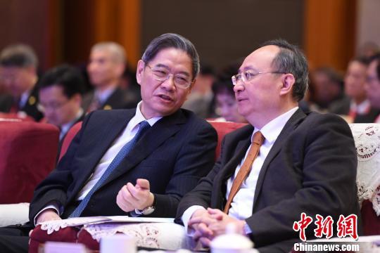“四川—台湾产业合作推介会”26日在成都举办,图为刘志军(左)、尹力(右)。 张浪 摄