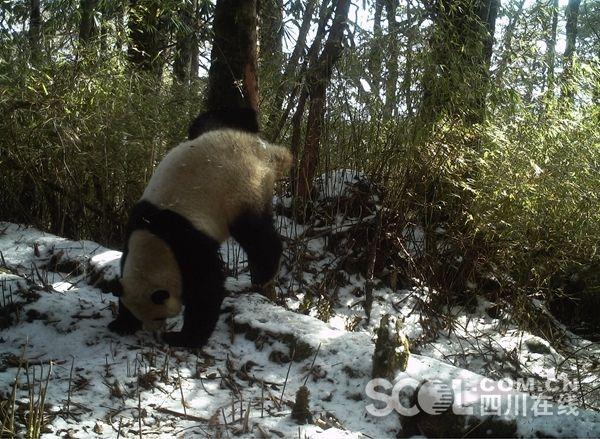 4月26日,四川卧龙国家级自然保护区木江坪保护站的工作人员在回收老鸦山野外研究区域的3台红外照相机中,均采集到了野生大熊猫"标记领地"和"嗅味树"过程的清晰图片和完整影像。其中本月记录到3次。最近1次是在4月22日,这也符合野生大熊猫的集中在四五月份"圈地恋爱"的规律。