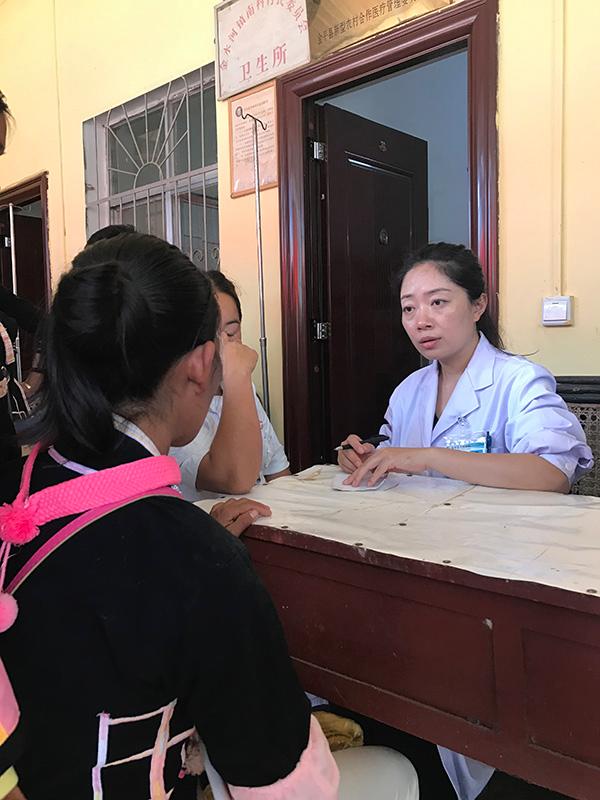 武欣正在给一位妇女问诊,当地妇女健康观念淡薄,如果不是下乡义诊,许多人不会主动去医院。