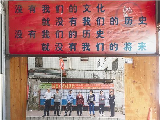 皮村打工文化博物馆门口贴着一张工人群像图,他们各自的梦想,在这里发芽。