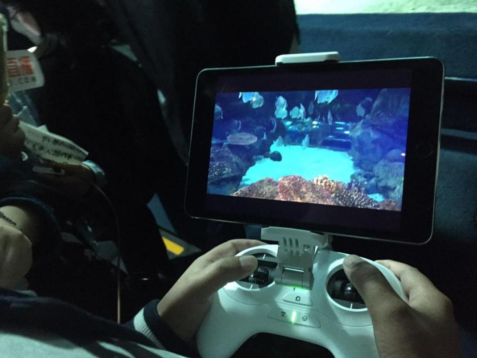 臻迪工作人员通过遥控器操作PowerRay运动的同时,还在APP中实时展示着其拍摄的水下画面,清晰流畅的画质让现场的摄影师不由得为之兴奋。PowerRay大师版搭配的臻迪特制版蔡司VR眼镜,通过重力感应能够操控机器人上浮下潜,带来更加真实的沉浸式体验,引得现场媒体嘉宾纷纷试戴体验。