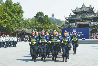 本报讯 (记者 罗向明 文/图)4月29日,一群着装整齐、青春阳光、统一佩戴蓝色袖标的“旅游警察”,在都江堰市南桥广场帅气亮相。这是都江堰市公安局新组建的“旅游警察”大队,该大队目前暂时挂在治安大队下开展工作,待时机成熟时有望独立成新警种。