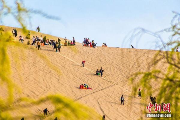 连日来,当地天气晴好,蓝天白云映衬着广袤的大漠,碧波涟漪的月牙泉畔花红柳绿,一连串驼队宛如长龙游走在鸣沙山上,吸引了大批海内外游客慕名而来。 王斌银 摄