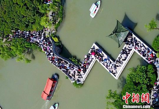 图为“五一”小长假扬州瘦西湖景区内人流涌动。 崔佳明 摄