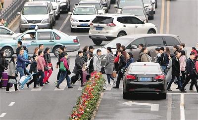 在城市过斑马线的很多人应该都有这样的经历:明明是绿灯,但往往需要让右转弯的汽车先过。右转车辆礼让行人,这是道路交通法的明文规定,但长期以来,抢行斑马线的驾驶陋习早已成为顽疾。右转的车辆头接着尾地过,绿灯时间往往又不到1分钟。当着急的司机遇上同样着急的行人,谁先过,就得看谁的胆、谁的脾气更大了。