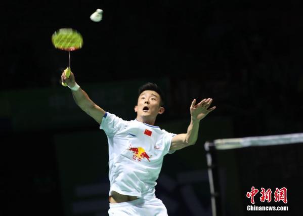 谌龙比赛中跳起扣杀。 中新社记者 张畅 摄