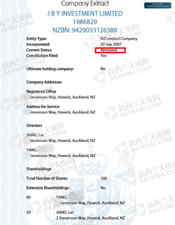 根据网友“魔王”提供的线索,天维网记者通过检索公开的信息,检索到了蒋雷在新西兰注册的公司。