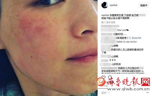 舒淇崩溃晒自拍照。5月2日消息,舒淇崩溃晒自拍照。据《东森新闻》报道,舒淇29日在IG发文,晒出自拍照,脸上大面积的红肿,令粉丝心疼不已,她自己也忍不住对这块红肿直呼:“咱能不能以后永远不相见啊!”舒淇崩溃写道:“你还要我怎样,又这样,能怎样,咱能不能以后永远不相见啊。”画面中,只见她半边脸上,到处都长满疹子、看起来明显红肿,疑似又是因为过敏所导致,反复发作令她相当无奈。