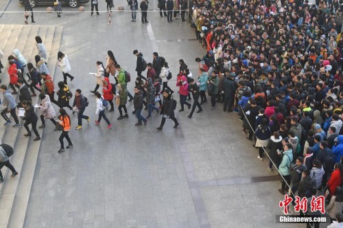 资料图:2016年11月27日,山西太原一国考考点,考生排队准备进入考场。武俊杰 摄
