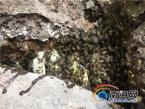 图为村民在查看蜂洞。南海网记者 王旭 摄
