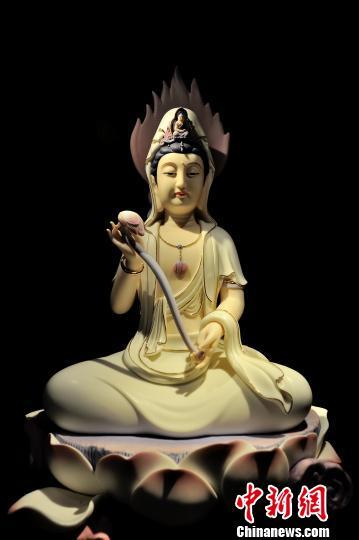 图为瓷塑观音造像。章学军供图 章学军供图 摄