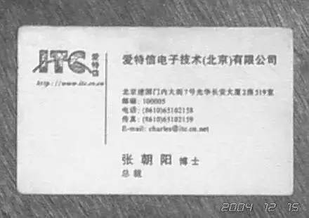 前段时间跟霉霉传出绯闻的张朝阳的名片也是走简洁风。当时公司还是搜狐的前身“爱特信公司”,1996年下半年,拿到第一笔17万美金的天使投资后,张朝阳要做互联网,但张朝阳自己也没有想好。张朝阳的公司起名叫互联网技术公司(Internet Technology Company),英文缩写是ITC,去工商局申请的时候,工商局要求中文名一定要按ITC的中文谐音翻译,最后落实到爱特信这三个字。