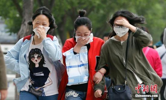 5月5日,北京在大风扬沙中迎来立夏,气象台发布大风黄色预警。当日北京遭遇5、6级偏北风,阵风达8、9级,局地伴有扬沙。中新社记者 廖文静 摄
