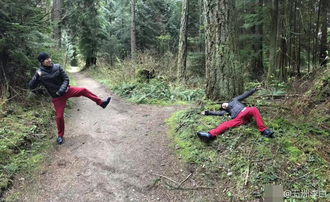 撒贝宁搞怪拍照。