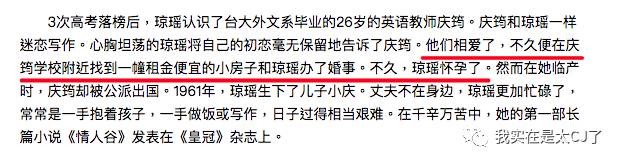 话虽如此,但琼瑶从来就不是个孝顺女儿。她59年也就是21岁时和作家庆筠结婚,然后搬去高雄,之后琼瑶是抱着孩子写作,日子过得相当艰难的。