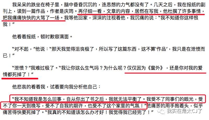 但也因为《窗外》,琼瑶写的初恋让庆筠觉得非常不舒服,外界评论加速了他们感情解体。