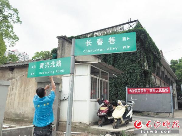长春巷路牌,不仅方向弄错了,而且放置的位置也不准确。 长沙晚报记者 谢春年 摄