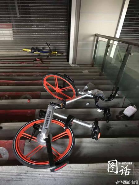 11月,共享单车在成都兴起,只要扫码就可骑走,许多市民大赞方便。同时,共享单车却又接连遭遇“尴尬”:被上锁、被挂上树、被放进自家楼道…13日,成都建设路一购物广场地下室入口,几辆共享单车又被横七竖八的堆放着...