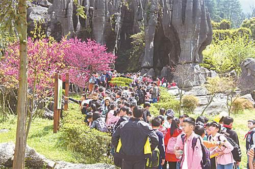 无论是对喀斯特岩溶地貌感兴趣,还是想置身于花海中感受阳光,无论是想寻找那4.9亿年前的石头,还是想到进行探险之旅,龙鳞石海实践基地都可以满足这些需求,因为发展社会实践教育,这所古老的石林又增添了新的魅力。