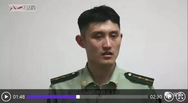 图为军网采访“榜样的力量”照片中的武警战士讲述事发经过 视频截图