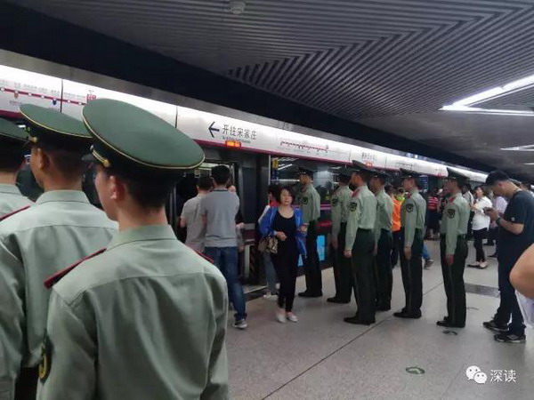 据了解,这些武警是完成了在奥体中心附近的执勤任务后,乘地铁返回部队。