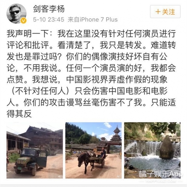 在李杨导演被粉丝群嘲之后,昨天又发了一条微博称自己并没有对任何演员进行批评,只是转发了一篇文章而已。演员演技的好坏大家都看在眼里,粉丝的谩骂也攻击不了他。