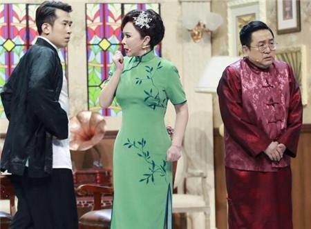 “百变女王”蔡明又换上一袭水绿绣花旗袍,尽显凹凸有致的曼妙身材,旗袍下若隐若现的修长美腿颇有时尚“小心机”。 作为合作多年的默契老搭档,蔡明与句号不仅合作出演过电视剧《闲人马大姐》,还两度共同登上春晚舞台,为观众奉上《爱笑的女孩》、《送礼》等精彩作品。此次,句号也是受蔡明之邀,为蔡明倾情助演。图为蔡明与句号同台。