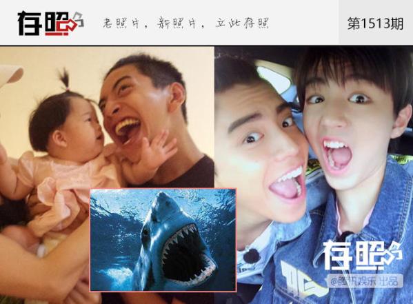 【王大陆大嘴“吃”遍天下 撞脸鲨鱼】明明安静的时候是一枚美男子,王大陆却偏偏喜欢放飞自我,自拍时最爱的表情就是张大嘴!尤其是面对小孩子的时候,他每每张大嘴都会吓哭小朋友,以致于“王大陆吃小孩”屡登微博热搜榜,这也难怪,毕竟他看上去太像大鲨鱼了!另外,他每次跟人合影,都会带动对方也夸张出镜,这不,连斯文帅气的王俊凯都放飞了(右图)。