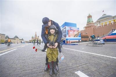 在红场观看阅兵式的民众中,一些人手持红色康乃馨,伊戈尔一家4口则头戴二战时期苏联红军的绿色船形帽。伊戈尔说,他们一家差不多每年都会来观看阅兵式,“庆幸我们至今还能延续庆祝胜利日的传统,希望世界和平、战争不复”。